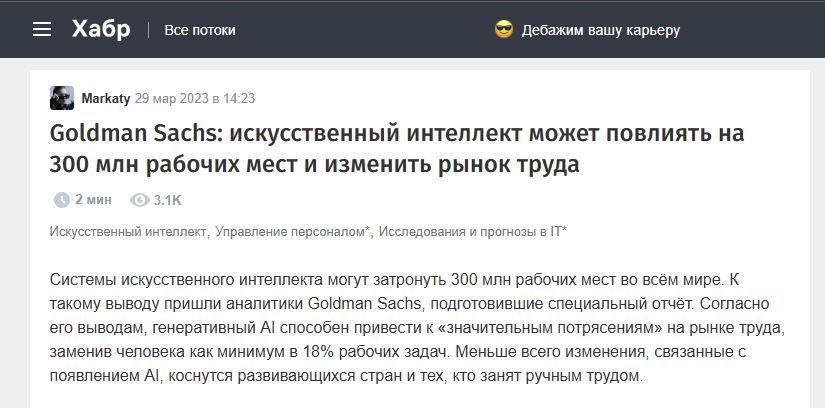 - "ИИ заберёт 300 миллионов рабочих мест"